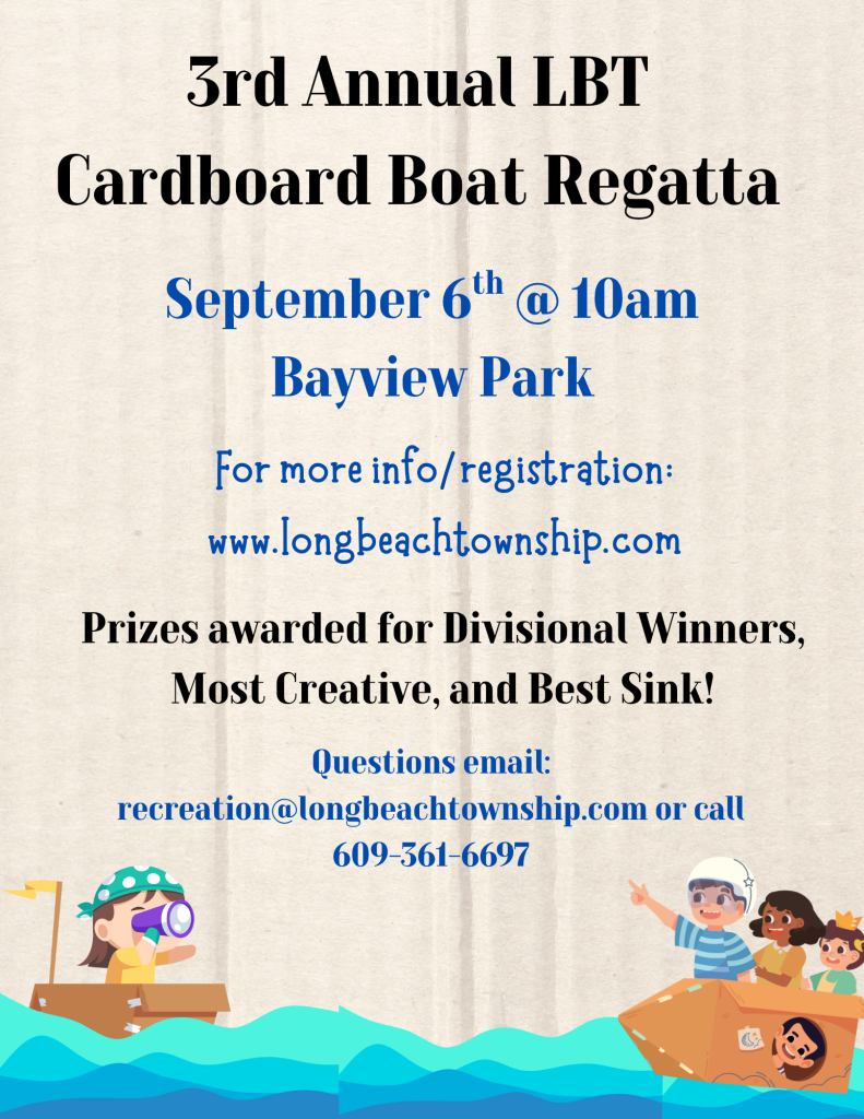 Join us on September 6th at Bayview Park at 10am for the 3rd Annual Cardboard Boat Regatta! This event is a blast! For rules, registration papers, & to RSVP please go to: https://www.signupgenius.com/go/10C0549ADA723A4F5C52-57883474-cardboard